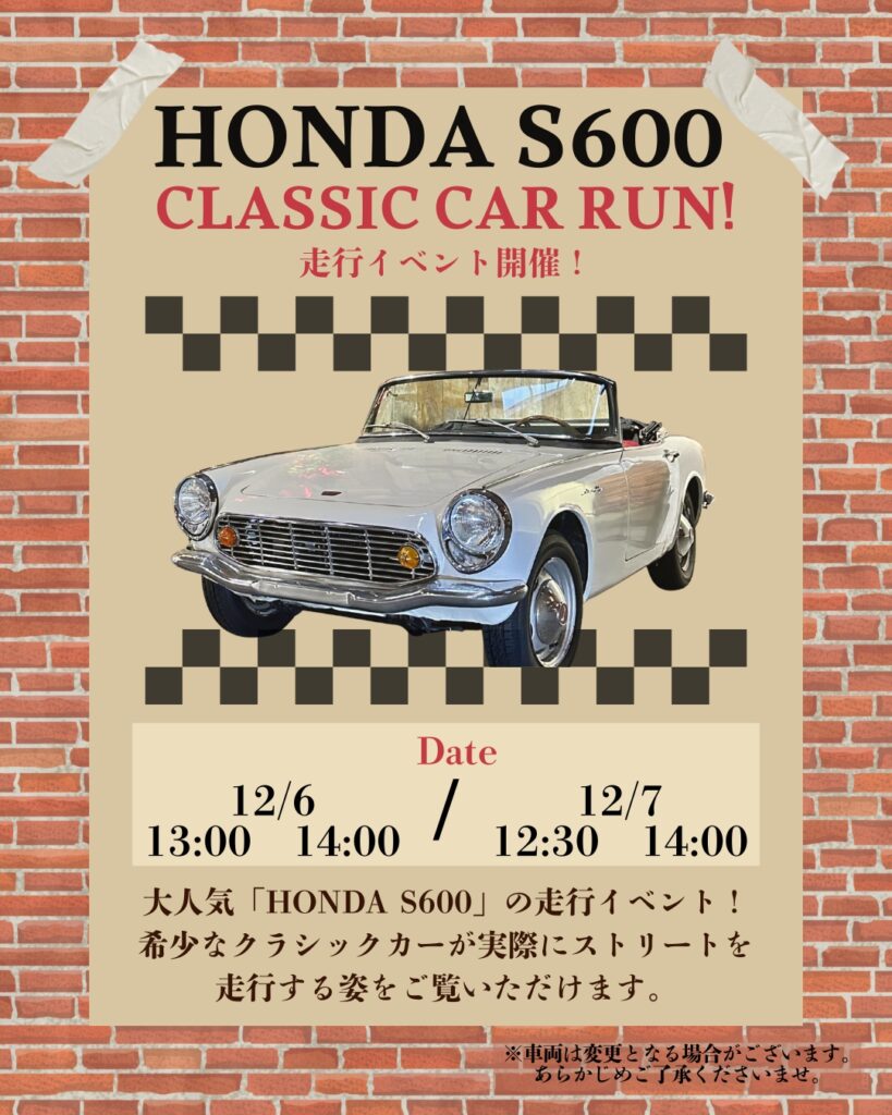 【12/6-7】HONDA S600走行イベント開催!【GLION 39days Fair】
